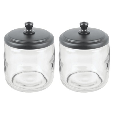 Buy Bathroom Storage Jar Glass Bathroom Vanity Storage Organizer Holder Canister Apothecary Jars Set For Cotton Swabs Cotton Balls Rounds Makeup Sponges Bath Salts Stainless Steel Lid 2 Pack Online At Lowest